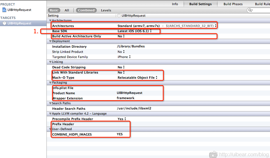 2、设置 Build settings ,具体如图,根据自己需求去修改