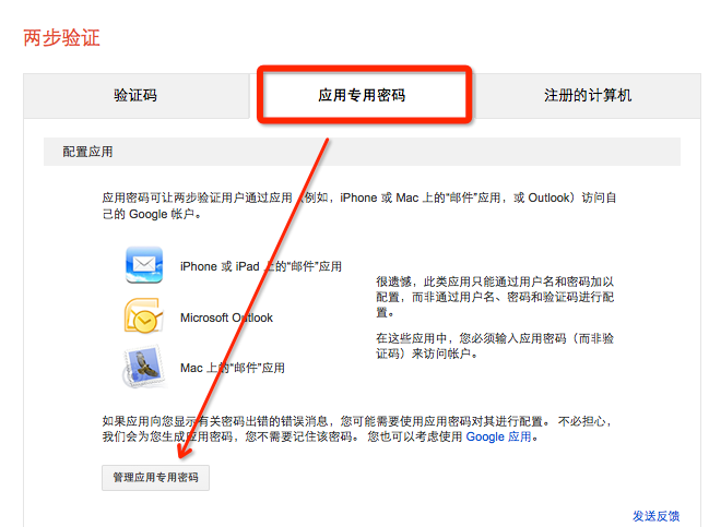设置后,会到这个介面,选择『应用专用密码』——》『管理应用专用密码』