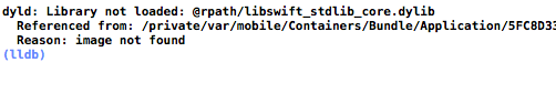 dyld: Library not loaded: @rpath/libswift_stdlib_core.dylib