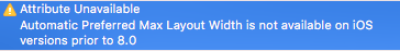 [warning]Attribute Unavailable: Automatic Preferred Max Layout Width is not available on iOS versions prior to 8.0