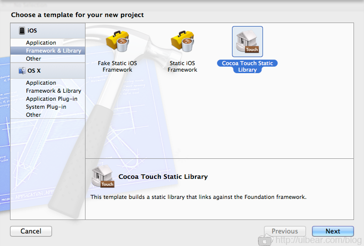1、新建xcode项目,选择 Cocoa Touch Static Library