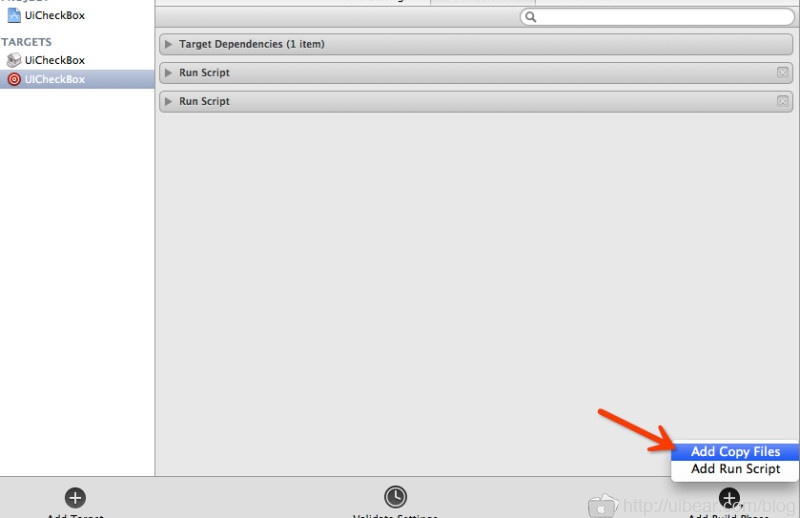 11、选择 TARGETS — Build Phases 再点 + 新增